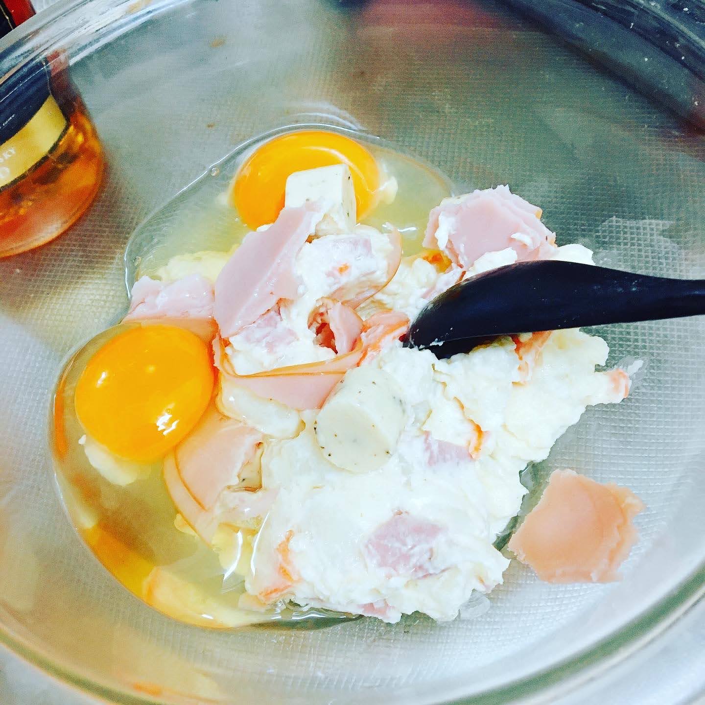 バジルマヨネーズ、ハムチーズと合わせてパンに合わせても美味しいです。