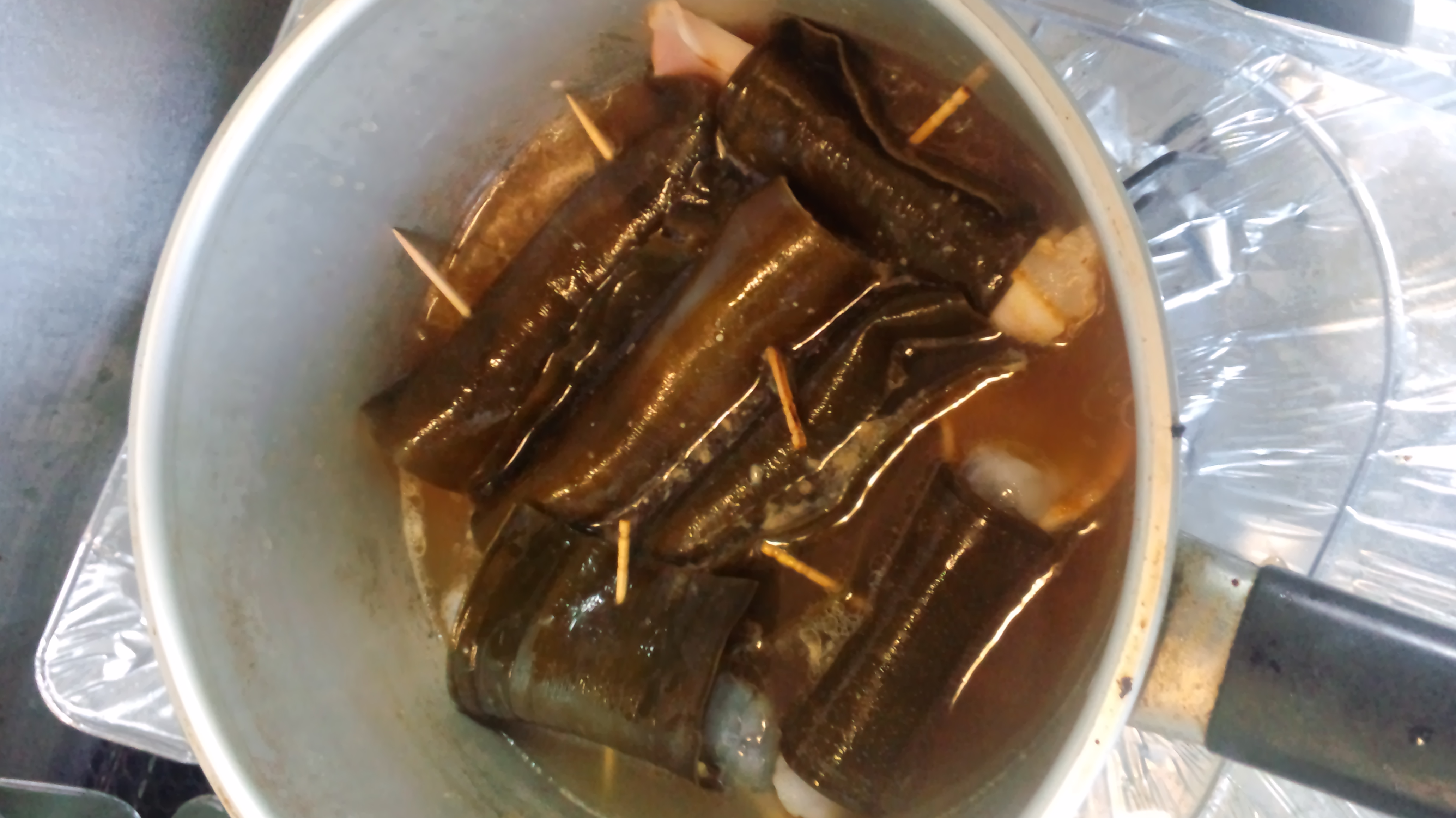 先ほどのスープにどぼんと漬け込んで煮込みます。